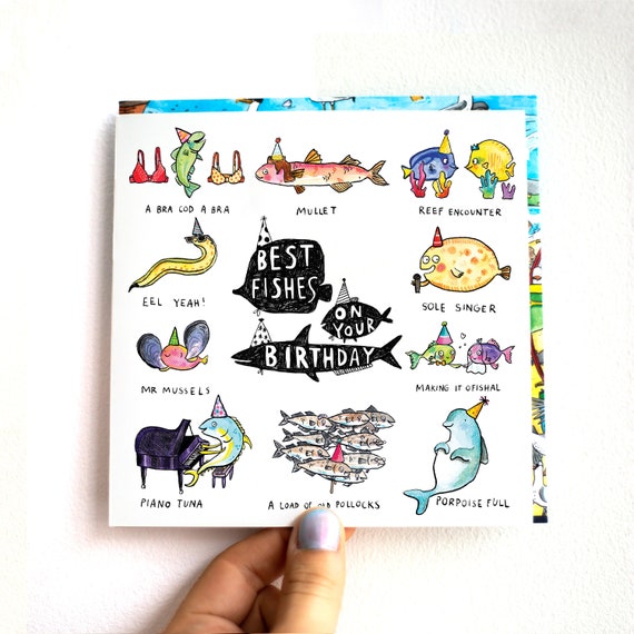 Best Fishes On Your Birthday Fish Pun Humour Funny Marine Life Jelly Armchair Cat Faulkner Etsy